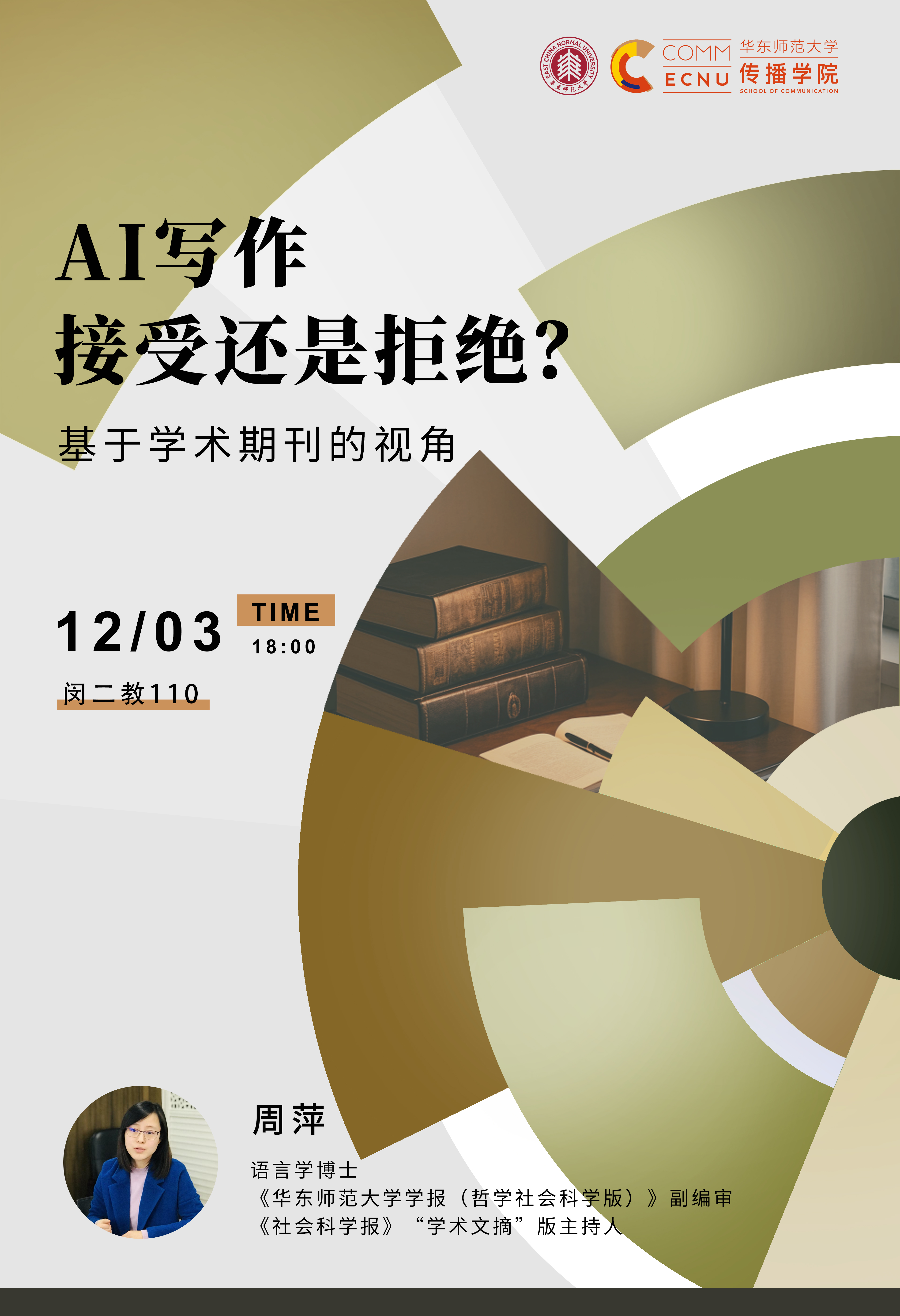 讲座预告 | 周萍:AI写作,接受还是拒绝?——基于学术期刊的视角