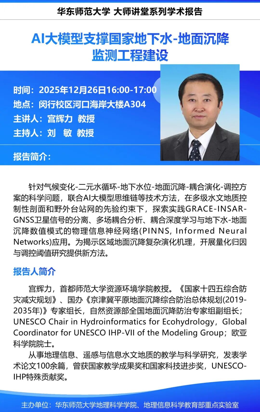 【讲座预告12-26】AI大模型支撑国家地下水-地面沉降监测工程建设
