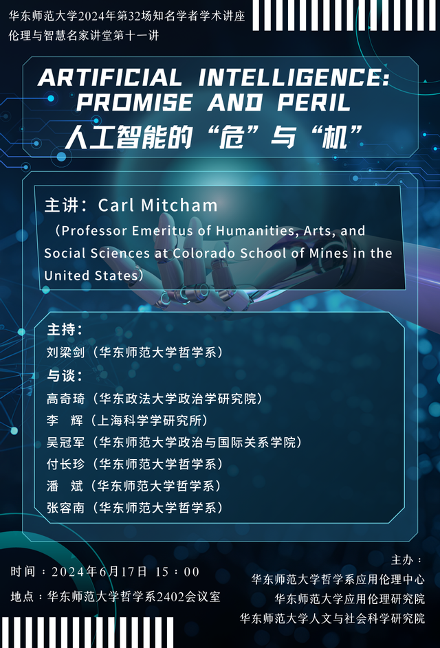 卡尔·米查姆 (Carl Mitcham),美国科罗拉多矿业学院人文、艺术和社会科学名誉教授。在欧洲和中国的多所大学担任客座教授。获国际世界技术网络 (WTN) 伦理学奖(2006 年)、西班牙瓦伦西亚国际大学荣誉博士学位(2010年)。出版著作包括《通过技术思考:工程与哲学之间的路径》(1994 年)、《科学、技术和伦理百科全书》( 4 卷,2005 年)、《牛津跨学科手册》(2010 年,与 Robert Frodeman 和 Julie Thompson Klein 合著)、《伦理学和科学导论》(2012 年,与 Adam Briggle合著)和《迈向工程哲学的步骤》(2020 年)。曾担任美国科学促进会科学自由与责任委员会成员(1994-2000 年)以及欧盟委员会专家研究组成员(2009 年、2012年)。