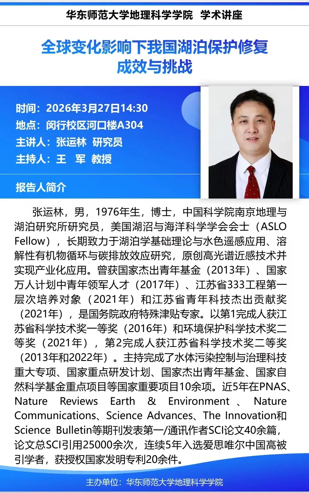 【讲座3-27】全球变化影响下我国湖泊保护修复成效与挑战