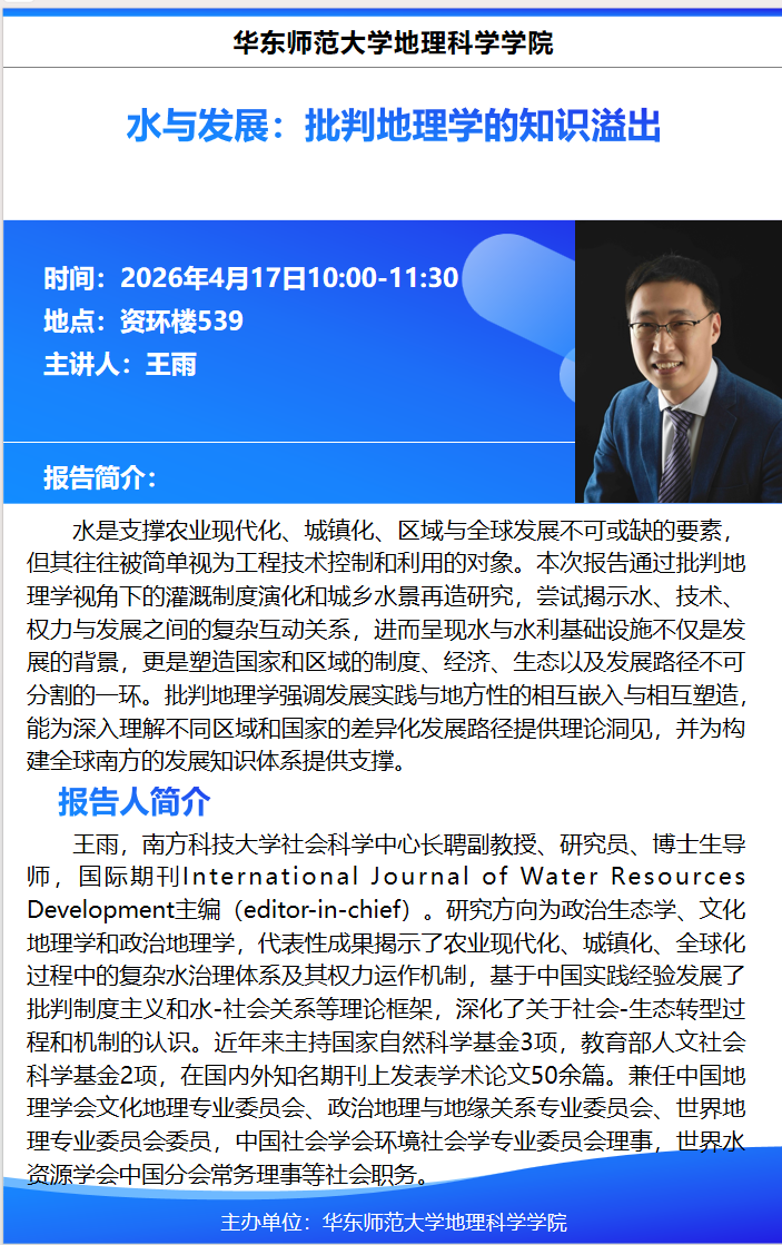 【讲座4-17】水与发展:批判地理学的知识溢出