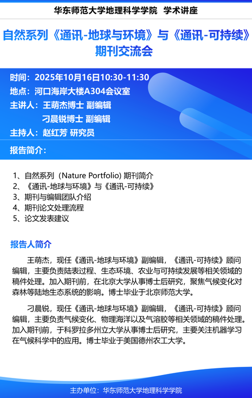 【讲座10-16】自然系列《通讯-地球与环境》与《通讯-可持续》期刊交流会